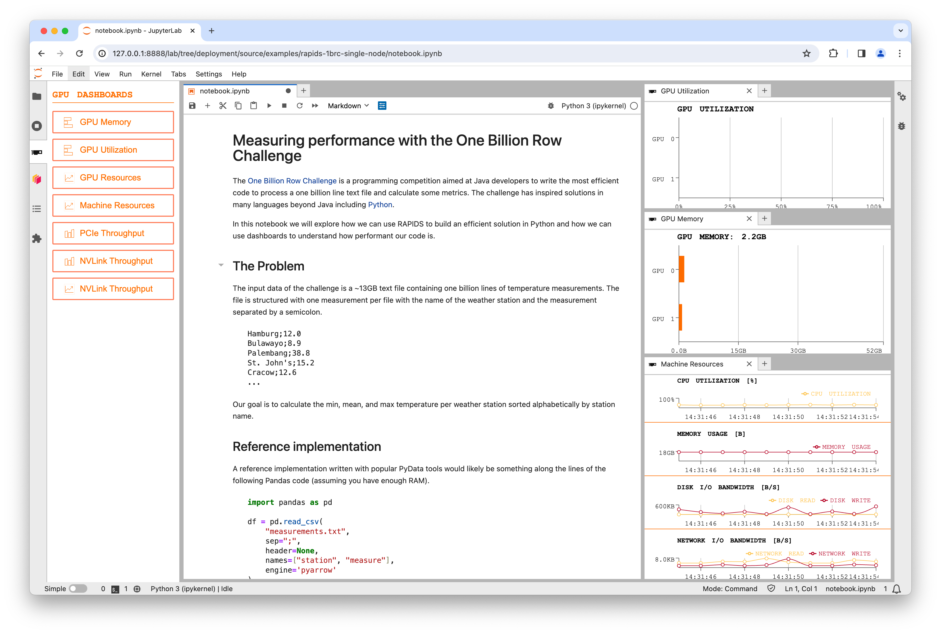 In the first cell of your notebook, load the `cudf.pandas` extension